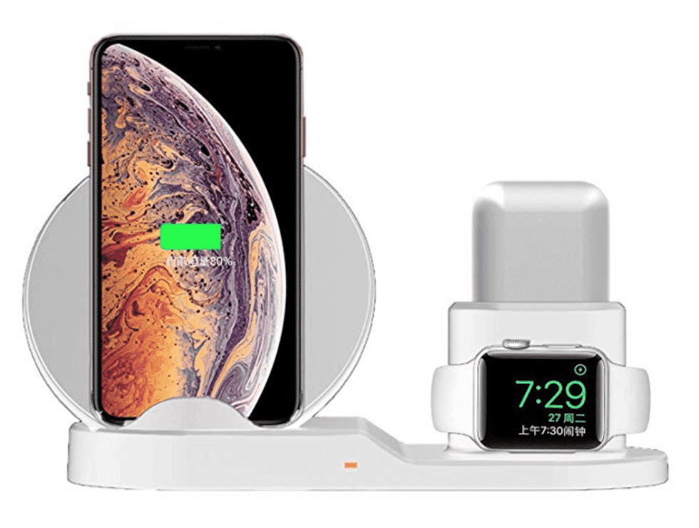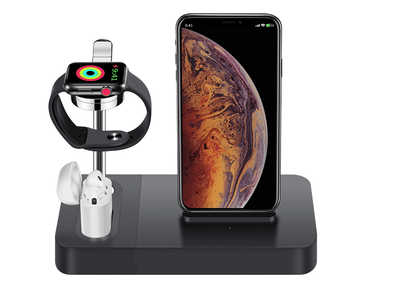 It comes with a 10W Qi fast wireless charger stand that is compatible with the iPhone 8/8 Plus, iPhone XS, iPhone XS Max, and the iPhone Xr. You can also charge any Apple’s iWatch Series 1, 2,3 and 4 along with your AirPods.