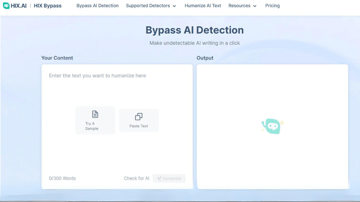 HIX Bypass has a very simple three-step user process. First, you copy and paste the text that you want to humanize into the box provided. You can then click the “Humanize” button, and simply sit back and wait while HIX Bypass does all the hard work for you – in seconds, you should have a completely human output, ready to bypass any AI checker.