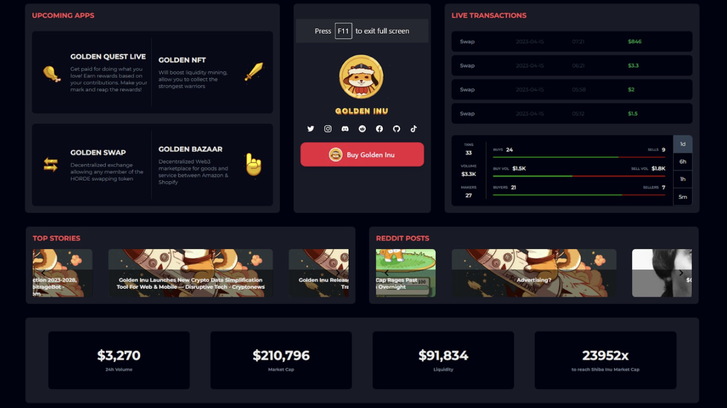 In separate news, the Golden Inu token is also expanding onto the Ethereum blockchain according to a Crypto News Flash report. The ERC20 version of the $Golden token will go live on public exchanges after 4 funding rounds; the project goal is to raise US$418,000.