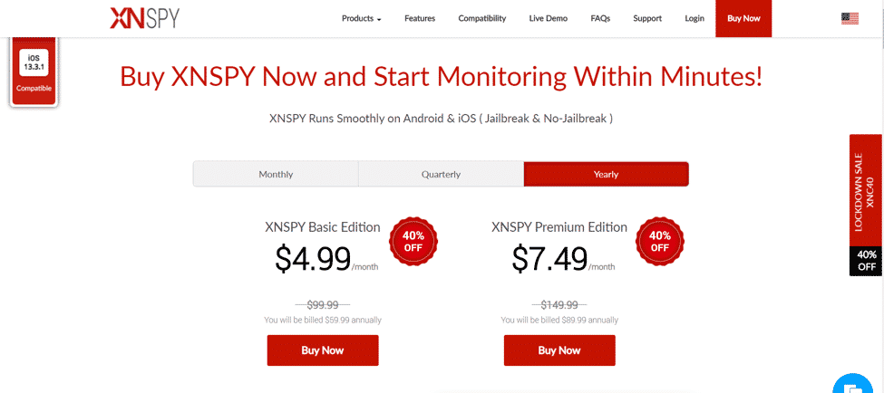 Step 1: Visit the official website of XNSPY and purchase “Xnspy for iOS” from the “Buy now” option.
