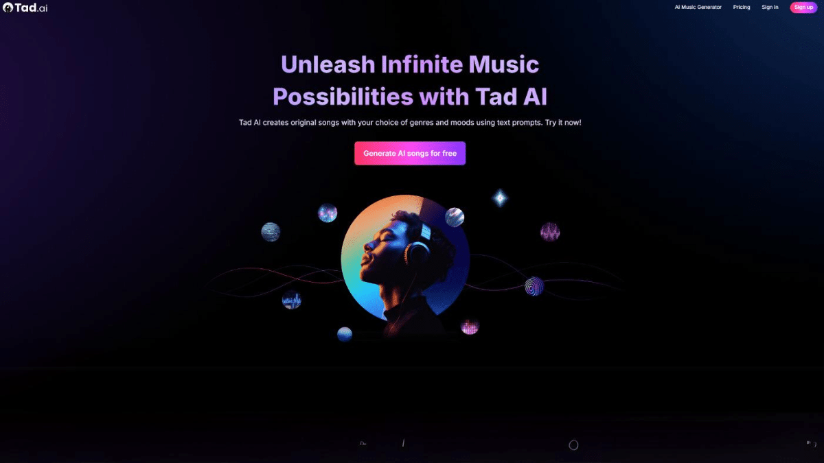 Tad.ai is an advanced AI music generator that empowers music creators and lovers to produce original and high-quality tracks in various genres. It can create unique songs by analyzing the song title and lyric content you input before reshaping them into a captivating music composition within minutes.