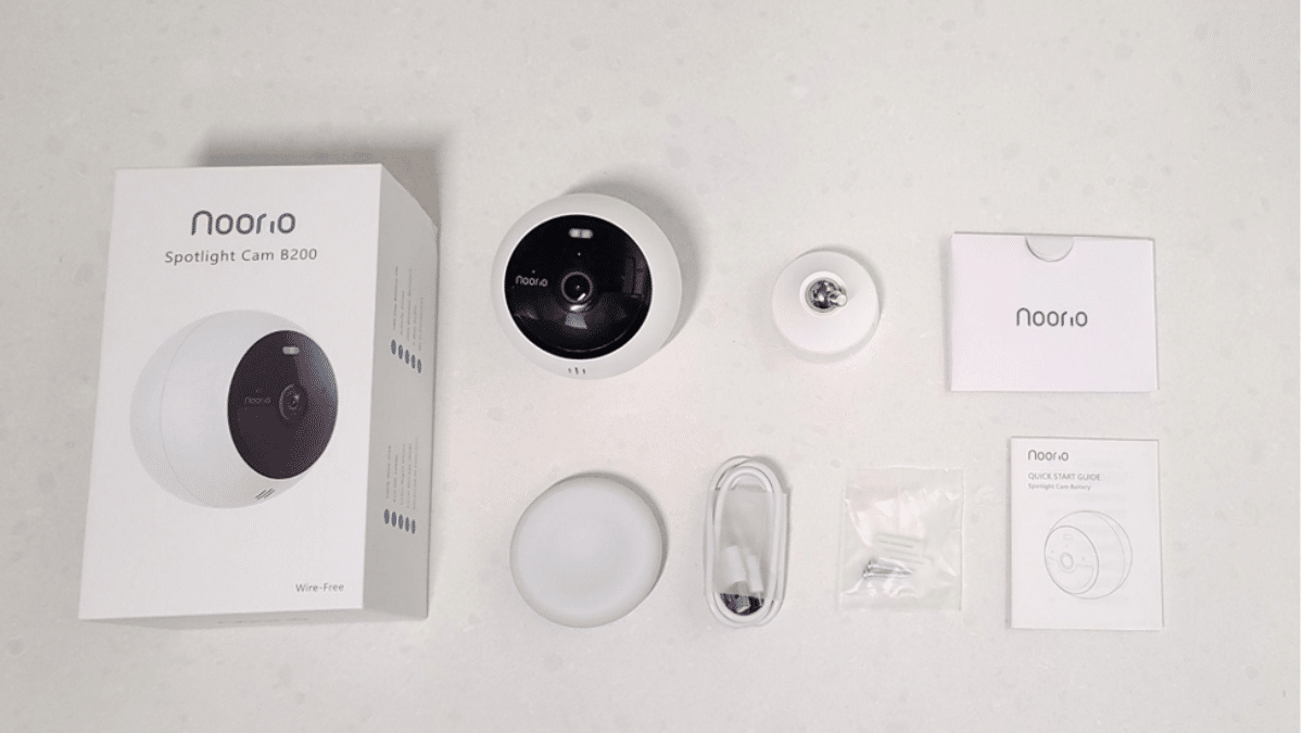 When you open the box of the Noorio B200 wireless camera, you will see a round-shaped refined camera made of durable material. The product is designed specifically considering the outdoor conditions. With its IP67 waterproof rating, it can work in harsh weather such as snow, rain and other harsh temperatures. The following parts you see on a ball-shaped camera such as: