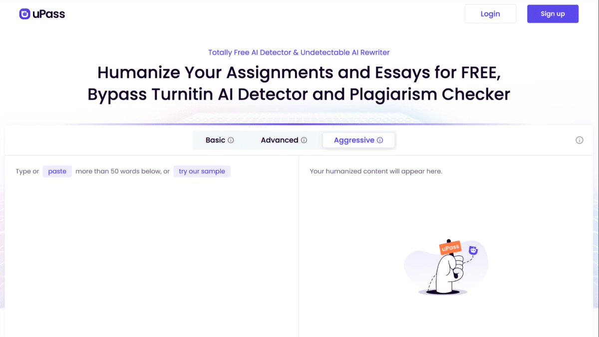 If you’re a student who wants to safely submit AI-written content without breaching academic guidelines, then uPass is the perfect solution. With its advanced AI humanization capabilities and broad anti-AI detection coverage, you can be confident of bypassing any AI detector out there in just a few clicks. So, don’t waste any time and head over to uPass now!