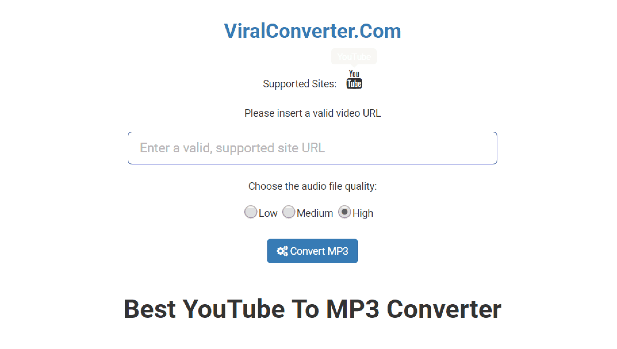 The name of our recommended tool is ViralConverter.com. It is a popular YouTube to MP3 Converter. You don’t need to download or install any software; no Registration or sign up requires downloading. It is very simple and easy to do.