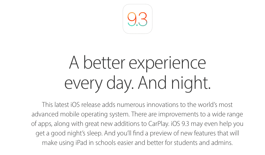 Apple’s iOS 9.3 Preview page highlights ‘Night Shift’ mode + more