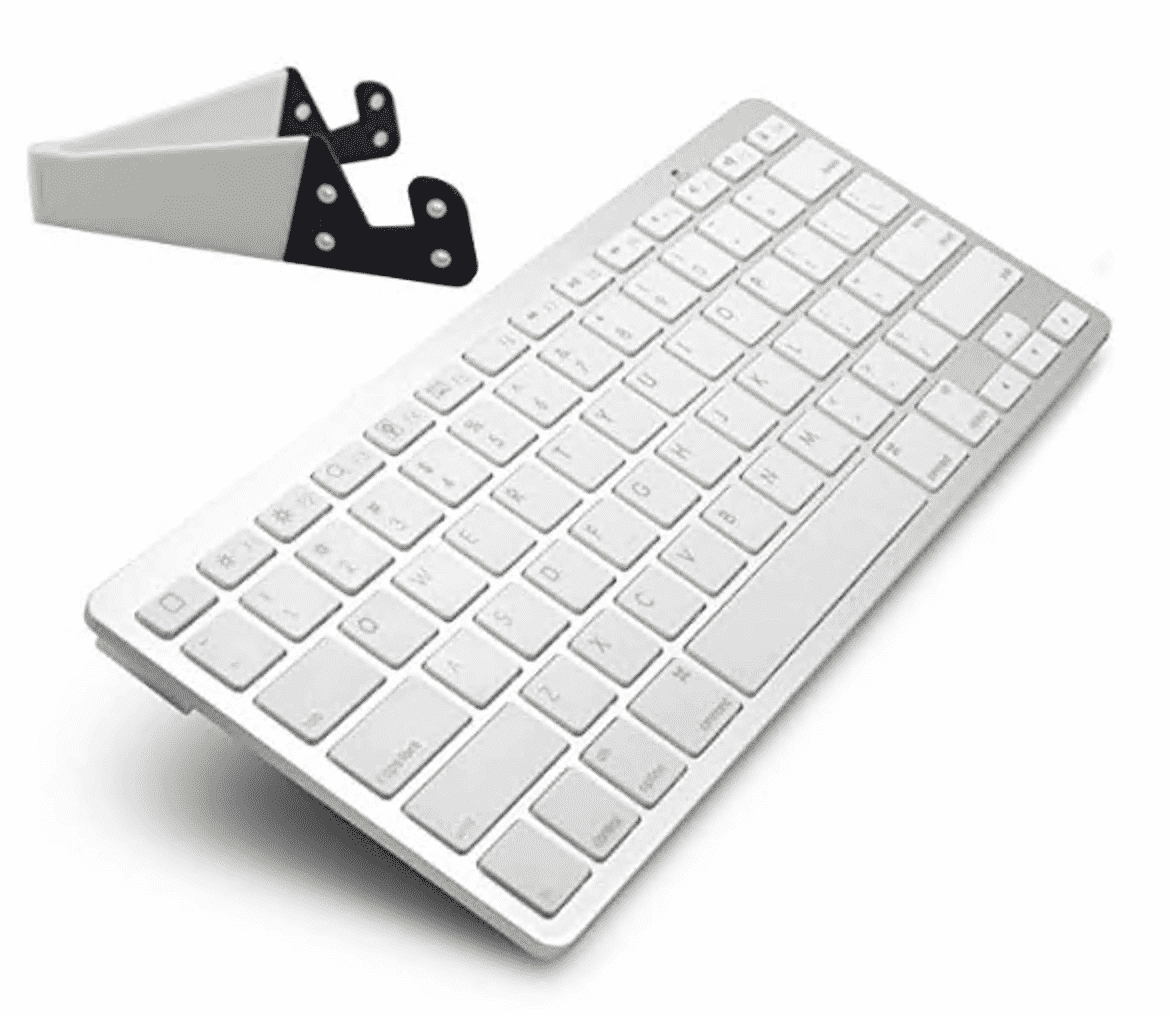 Insert two fresh AAA batteries and you can expect the mini bluetooth keyboard to last for 6 months. Not bad for a standalone keyboard that’s stylish and comes with a handy stand!