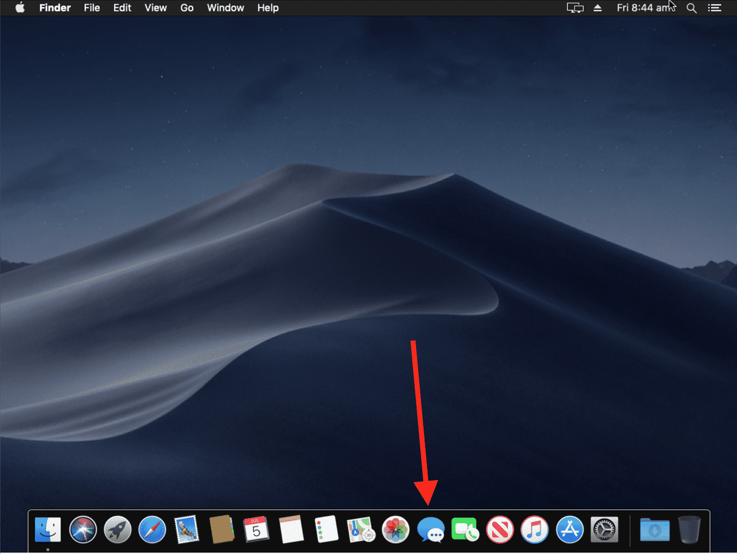 After the macOS Mojave installation has completed, click on the “iMessage” icon at the bottom of the screen. Checkout the screenshot below to give you an idea of how the icon looks like.