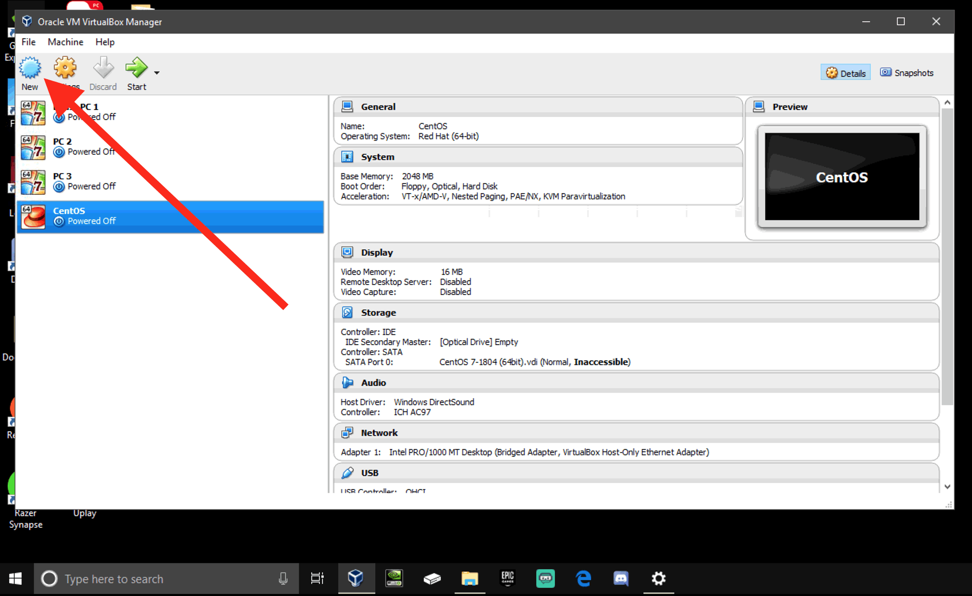 - Open the VirtualBox software on your PC.