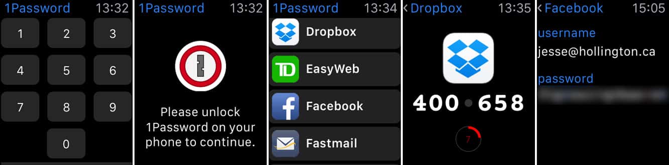 We found the time-based one-time-password (TOTP) support to be especially handy, however, considering the number of sites that are now implementing two-factor authentication—it’s handy to be able to simply glance at your wrist when logging into Dropbox or Evernote from a strange web browser. While 1Password 5 is a free download from the App Store, you’ll need to purchase the “Pro” in-app upgrade to take advantage of the Apple Watch features.