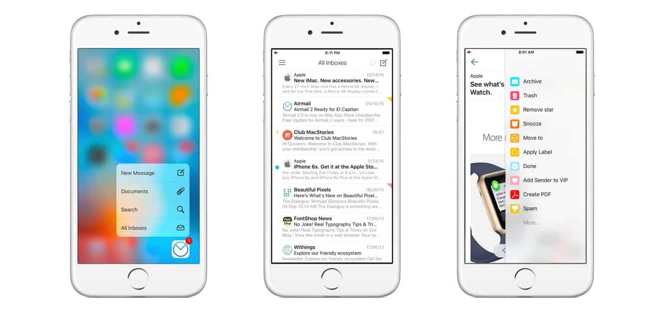 Airmail ($5) — Following closely on the heels of its latest Airmail for Mac update, Bloop has released the first iPhone version of its popular email client. The iPhone version includes most of the great features and design from the Mac version, and you can even sync your email accounts and other settings from your Mac to get you up and going quickly. You also get full support for 3D Touch on the iPhone 6s and iPhone 6s Plus, an easy snooze feature, interactive notifications, and the ability to customize actions and the appearance of the app. Airmail for iPhone also offers integration with a wealth of other third-party iOS apps, allowing you to send email messages and links to Calendars, Reminders, OmniFocus, Evernote, Pocket, Asana, Google Tasks, Wanderlust, Fantastical, Things, Deliveries, Appigo ToDo, The Hitlist, and a whole lot more.