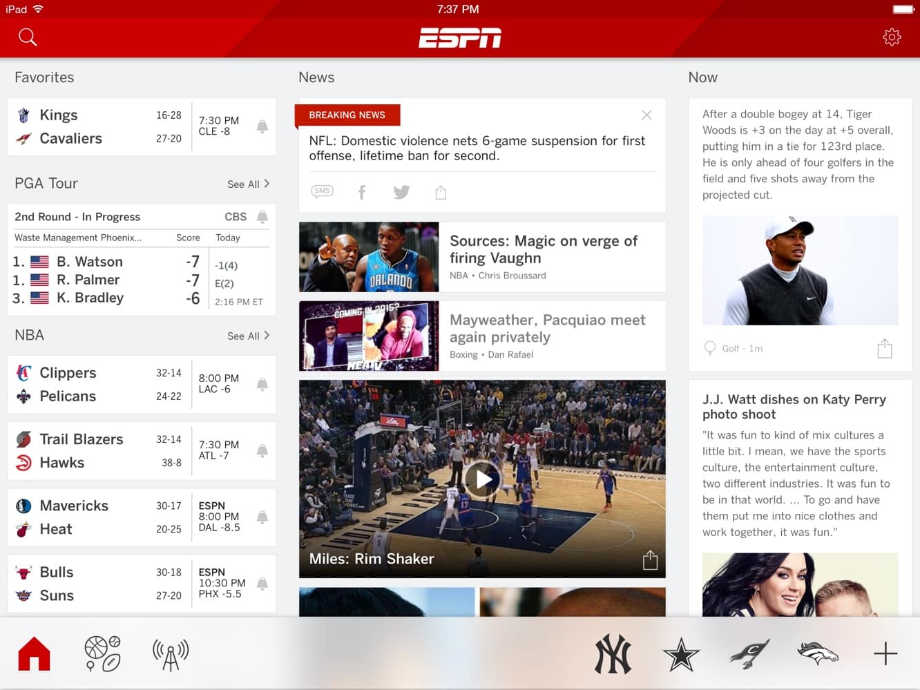 ESPN (free) — The popular sports news and stats app gets a nice update both for the iPhone 6 and 6 Plus as well as a whole new iPad design. Icons for your favorite teams now appear throughout the app so that you can pull up news and stats from anywhere you happen to browse, and ESPN Now provides up-to-the-minute photos, videos, and social media content. Support for the Cricket World Cup has also been added in this latest update.