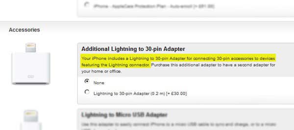 Something odd happened at Apple this morning. While most of the world was sleeping, some of us were awake ordering new iPhones and iPods from the online Apple Store. During the sales process, a little dialog box popped up noting that the new “iPhone includes a Lightning to 30-pin Adapter,” and offered to sell us an “additional” one along with the purchase. Soon afterwards, Apple sales representatives began to tell customers that this was an “error.” And according to your web site, the iPhone 5’s specs page confirms no adapter is included.