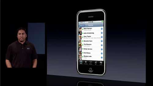 AOL Instant Messenger for iPhone: Native to the iPhone rather than running off of a more limited web-based interface, AOL’s Instant Messenger (AIM) for iPhone is the closest thing to Apple’s IM program iChat yet seen for the device. Using a sophisticated Buddy List with buddy icons and current status, AIM lets you update your online profile and photo directly from the iPhone, conduct multiple conversations that can be swipe-gestured through, and use emoticons. A Bonjour icon at the bottom of the screen—used by iChat to figure out buddies who are available for audio and video conferencing—was not demonstrated or explained. Likely to be available to users, price and date yet to be determined.