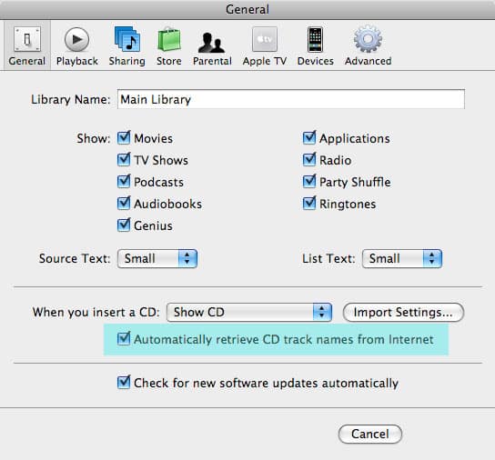 You can also force iTunes to retrieve CD track names on an individual basis by selecting Get CD Track Names from the iTunes “Advanced” menu.