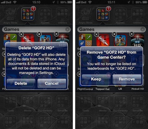 For games that use Apple’s Game Center, you will also be given the option of removing the app from your Game Center profile when deleting it. You should normally choose the Keep option here if you’re still planning to reinstall the game or continue using it on other devices with the same Game Center account.