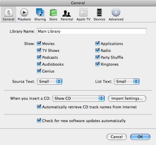 A: You can control which categories are displayed in your iTunes Source list by going into your iTunes preferences.