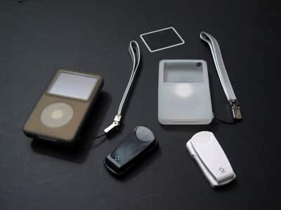This three-pack of slotted-back silicone cases for the 30GB fifth-generation iPod includes film protectors, a lanyard, separate lanyard headphones, and the thinnest armband we’ve ever seen. The slots can also be used for belt mounting.