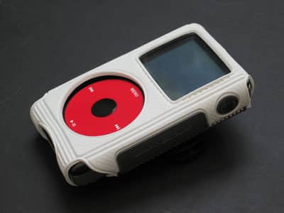 This attractive hard rubber case from wetsuit and cell phone case maker Body Glove features a textured design with an integrated screen protector and swiveling belt clip. It fits 20GB/30GB iPods only, and was a pleasant surprise to see the company stray from its neoprene case leanings.