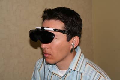 Back in January, we had an opportunity to briefly test four different wearable video display alternatives for the iPod – eMagin’s EyeBud 800, Icuiti’s iWear and DV920, and MicroOptical’s myVu – each with a different approach to letting iPod owners watch videos without squinting at the 5G iPod’s 2.5” LCD screen. We’ve previously discussed each of the options in a comparative article and later looked at a final production unit of Icuiti’s DV920; today, we had a chance to test a near-final version of eMagin’s EyeBud 800 ($500), which is arguably the most deluxe of the wearable displays. Since the hardware’s not yet final in appearance, this isn’t a First Look – just a sneak peek.