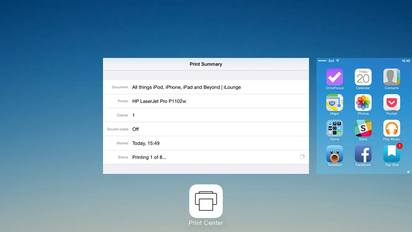 A: iOS actually does include a ‘Print Center’ similar to what you would find on the Mac, but it’s only available when you actually have pending print jobs in the queue, and even then it’s a bit hidden from normal view. To access it, you need to bring up the App Switcher by double-clicking the Home button.