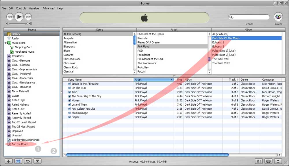 (2) Automatically create a “Pink Floyd – Dark Side of the Moon” playlist by dragging it into an empty area in the ‘Source’ column.