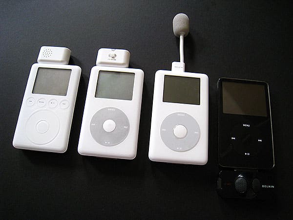 With the exception of Nike, no iPod accessory maker has received the sort of obvious Apple support that Belkin has enjoyed: the company’s first iPod voice recording and photo storage accessories were the primary subject of a 2003 Apple press release, as well as Version 2.1 of the iPod software, which required significant behind-the-scenes development work by Apple—efforts that the company has not extended to other third-party accessory developers. Similarly, Belkin was first out of the gate with an Apple-approved stereo voice recorder in 2006, even though competitors were itching to get their alternatives into stores first, and has since become more deeply invested in the iPod-as-recorder space than any other company. Over the past five years, Belkin has clearly led a charmed existence by the standards of most iPod accessory developers, and while support from Apple has been a major help, clean industrial design and engineering have certainly played big parts in its success as well. Our look at the recorders and media readers of Belkin begins here; we hope you enjoy.