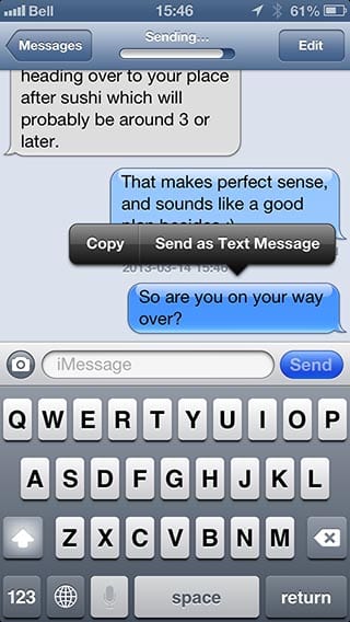 The problem is, this doesn’t seem to be happening for us. If I send my girlfriend an iMessage when her data is off, it actually says “Delivered” right away but she doesn’t get it until she’s back on Wi-Fi at home. I’ve even tried doing the “tap-and-hold” on the message from your article but don’t get a “Send as Text Message” popup appearing, only the “Copy” option.