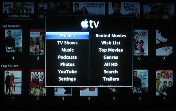 The listings for purchased Movies stored or streamed on the Apple TV have changed slightly. The Movies listing now displays the familiar blue dot to indicate which movies you have not watched, and individual movie entries now display a second line showing the duration of the movie.