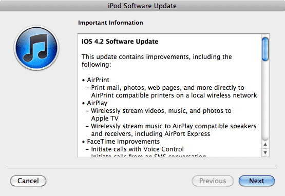 Again, however, this issue only applies to the second-generation iPod touch and iPhone 3G if you’re not already running iOS 4.0 on these devices. The third- and fourth-generation iPod touch, iPhone 3GS and iPhone 4 and the iPad should upgrade in-place. See Instant Expert: Secrets & Features of iOS 4.0 for more information on the iOS 3 to iOS 4 update process.