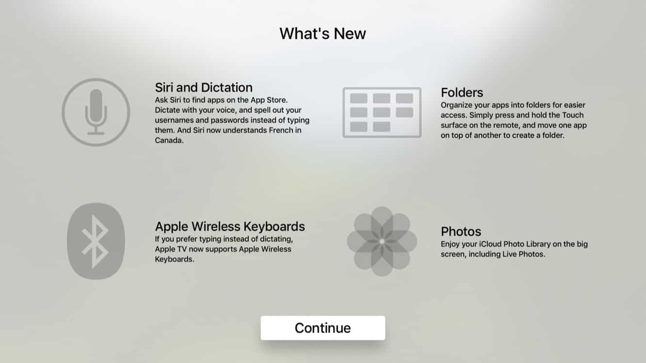 In addition to the feature-packed release of iOS 9.3 earlier this week, Apple also pushed out a significant update for its new fourth-generation Apple TV in the form of tvOS 9.2, adding home screen folders, new Siri features, support for iCloud Photo Library, and Bluetooth keyboard support for its newest set-top box.