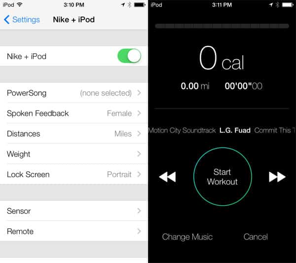 You’re still able to separately calibrate a Nike+ Sensor for tracking walking and running, assuming you want the enhanced accuracy of Nike’s shoe-based tracking accessory. Settings menus have received iOS 7-style fonts and dial controls.