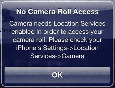 Note that this doesn’t necessarily mean the Camera app needs to have location services enabled, only that it needs to be enabled globally and for whichever apps may specifically require Camera Roll access; the location services specifically for the Camera app can still be disabled if you don’t want to actually add location information to your photos when you take them.