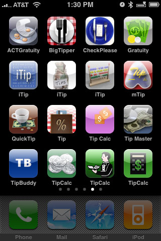 We considered a number of factors when rating these applications, placing the highest value on ease of use and intelligent handling of common dining situations. Other considerations included each app’s appearance, whether it included both bill splitting and tip calculation features, and how it was priced. Since the iPhone OS calculator can be used to handle basic tip calculation (multiply by 0.15) and check splitting (divide by number of diners), we favored applications that instantly provided a number of tipping options, and intelligently handled check division. No single application met our “ideal” standard of looking great, effortlessly handling complex tip and split calculations, and being free, but a number came closer to perfection than others. Our top picks are at the beginning of the list below, with the rest below them, organized by rating.