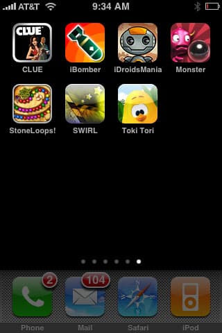 This may well be one of the best editions of our iPhone Gems gaming column yet. With three bona-fide cool games to highlight, as well as four that are less exciting but still noteworthy, we have a lot to show you: Clue, iBomber, iDroidsMania, Monster Pinball, StoneLoops, SWIRL, and Toki Tori.
