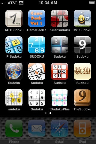The fifth-generation iPod had a total of one Sudoku game, Electronic Arts’ Sudoku/Num-Pre. When we went to compile a master list last week of every iPhone Sudoku game, we discovered that there were so many versions—17, collectively costing over $70—that we literally crashed our iPhone 3G trying to install them all at once. We published the list on July 22, and our goal was to give you reviews after we finished testing them. Then new titles and updates were released.