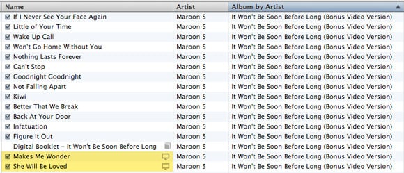 A: In iTunes 7, Music Videos were removed from the standard video sections and included in the “Music” section alongside their respective audio tracks. Therefore, if you purchased albums from the iTunes Store that included music videos, these should have been downloaded to your computer, but they will be listed in the normal albums alongside the respective music tracks, indicated with a small video icon shown to the far right of the track name: