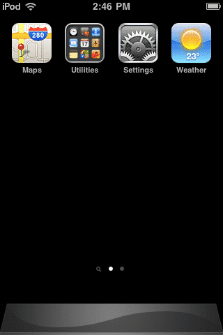 Try swiping left and right to ensure that these apps haven’t inadvertently been moved to another page of your home screen, and if you’ve updated to iOS 4 be sure to look for any folders that these apps may have been moved into. It’s possible to reorganize and move any icon on the screen to alternate home screen pages or place them in folders, even with the built-in apps. Folders are displayed as small collections of icons, and you can identify if there are alternate home screen pages by looking for the dots near the bottom of the screen above the dock area.