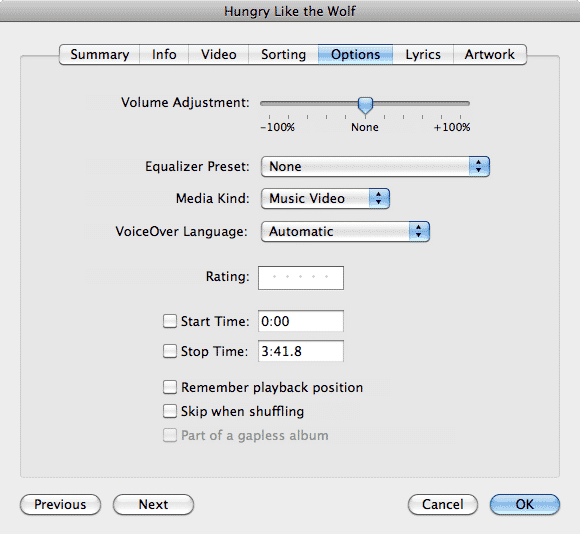 You can also adjust this setting for multiple tracks at once simply by selecting all tracks that you want to update before opening the Get Info screen.