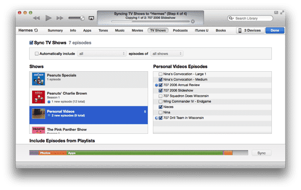An alternative approach is to simply forego the Videos app altogether and store your videos in the Photos app. If you’re a Mac user with iPhoto or Aperture, they can be synced on directly from these apps using iTunes, or synced from a folder of videos on either a Mac or a PC. These folders or albums that you sync to your iPad can include any combination of photos and/or videos. This is configured from the Photos screen in your device sync settings in iTunes, and the process for setting this up for videos is the same as it is for photos; just ensure that collections of your videos are also included in the albums or folders that you want to sync and the Include videos option is selected.