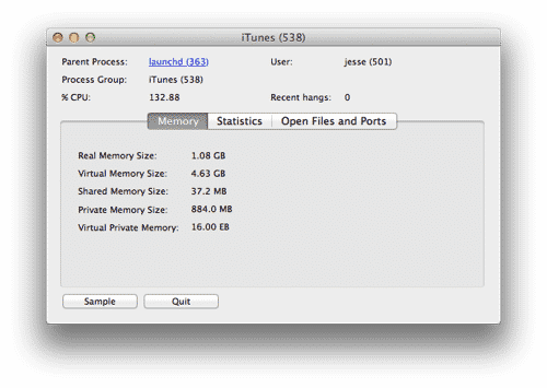 The easiest way to tell if insufficient memory is causing performance problems is to open up the Activity Monitor tool on your Mac, which can be found under the Applications’ Utilities folder and select the “System Memory” tab at the bottom. A lack of “Free” memory (the green section) is one possible warning sign that you have insufficient RAM for whatever apps are currently loaded, particularly if the red “Wired” and yellow “Active” sections are occupying the majority of the memory pie chart. However, the blue “Inactive” segment represents memory that has previously been used by other apps, but is now available to be reallocated if needed, so the real indicator of a memory-related performance issue is a high number of “Page outs”—this is an indication that your iMac is writing information from “real” memory (your RAM chips) to “virtual” memory (your hard disk) because it doesn’t have enough real memory available to work with. Since a hard disk is much slower than your RAM chips, every time iTunes (or any other app) needs to access something from virtual memory you’re going to see performance lags.