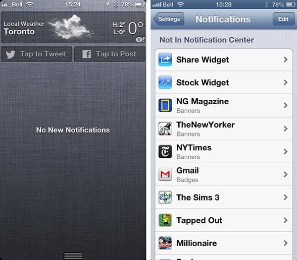 You can find the setting for the Share Widget under Settings, Notifications in the same place with the rest of your notification options, however if it has been turned off, you’ll need to scroll down to the “Not in Notification Center” section at the bottom to find it.