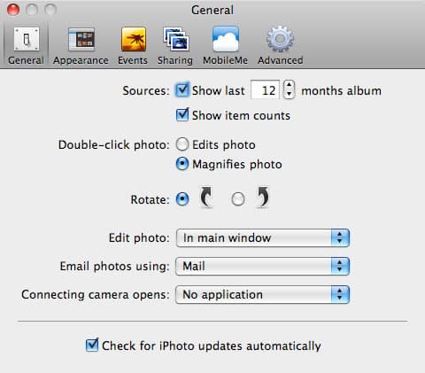 This should be a minor issue, however, as it’s not difficult to open iPhoto manually when you connect your camera and actually want to transfer photos into your iPhoto library.