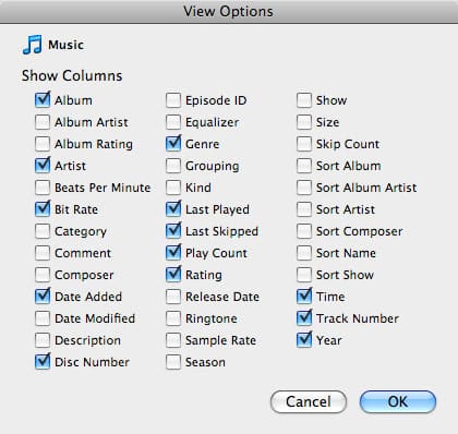 If you had manually re-added the files to your iTunes library after copying them to your E: drive, then you’re in a situation where you actually have duplicates listed in your iTunes library. In this case, you will need to clean these up from within iTunes. The easiest method might be simply to bring up the “Date Added” column in your track listing and then sort by this column in order to sort out the most recently added tracks. You can change your column view by choosing View, View Options from the iTunes menu, or by right-clicking on your column headings.