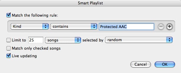This will collect all Protected AAC files, all of which were purchased from the iTunes Music Store.