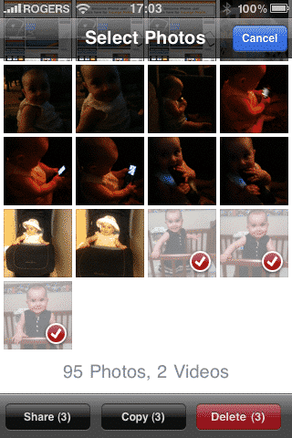 Regarding Photos, it is also possible to send up to five photos in a single e-mail. Simply go into the built-in Photos app, view an album in thumbnail view and then tap the button in the top-right corner of the screen.