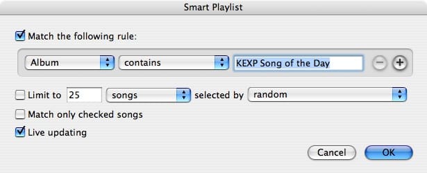 Q: I subscribe to KEXP.org’s “Song of the Day” podcast. I want to be able to hear the songs from that daily podcast in shuffle mode.