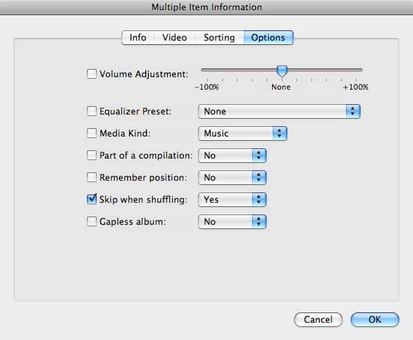 The disadvantage to this approach, however, is that it must be set on a per-track basis, so while you can set every track in your Jazz playlist to be skipped when shuffling, this setting will not automatically be applied to any new tracks you may add – you’ll have to modify these manually as you add them.