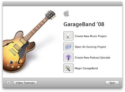1. After opening GarageBand ‘08, choose Create New Music Project.