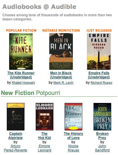 Audible presents new books on its main page.