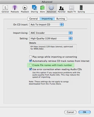 This setting determines whether iTunes will expect tracks to have a track number at the front of each filename or not.